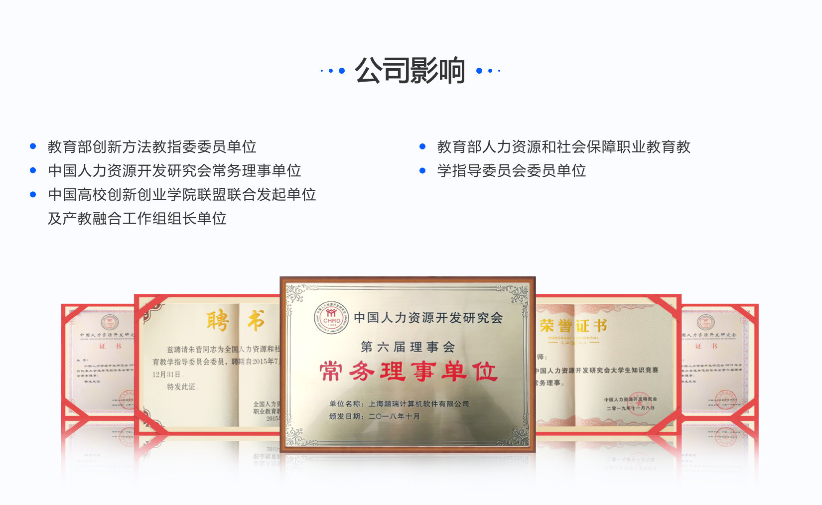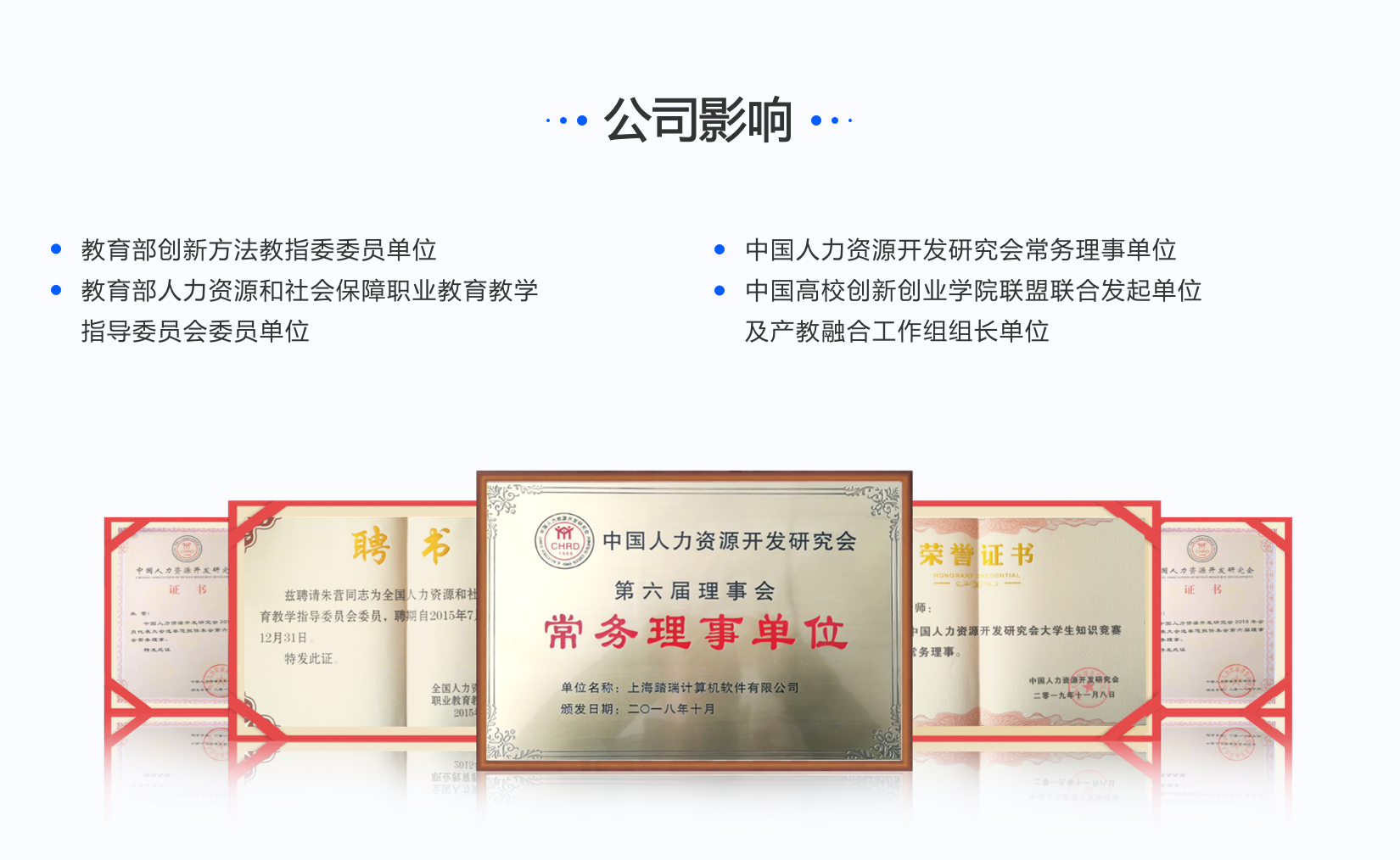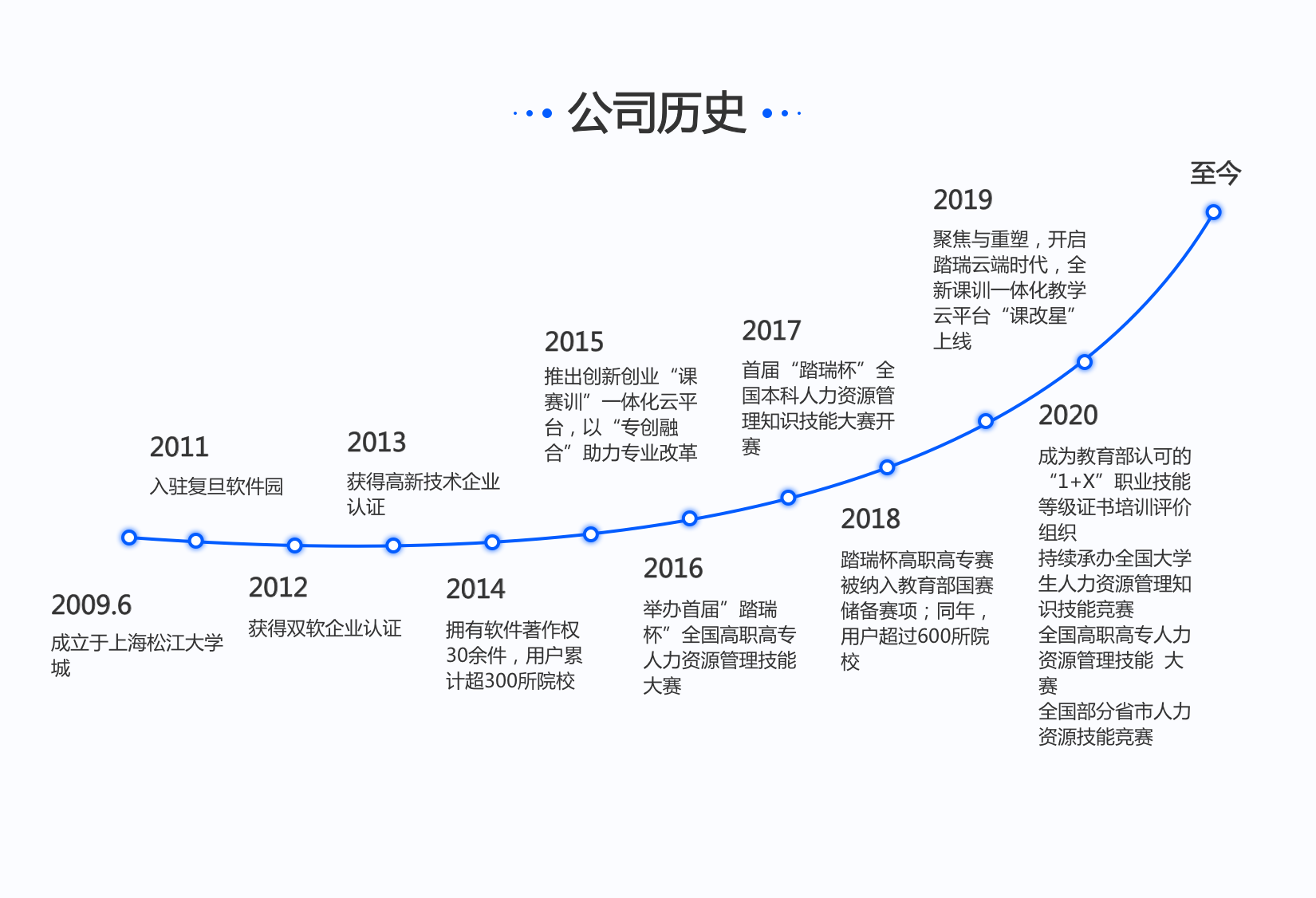上海踏瑞科技有限公司成立于2009年,是一家致力于人力資源管理專業的產教融合型高新技術企業,十余年來專注服務1000+用戶(超700所開設人力資源管理專業的院校),逐步形成了“課、訓、賽、證、研”的產品和服務生態,是高校人力資源管理教學及實踐領域的第一品牌。