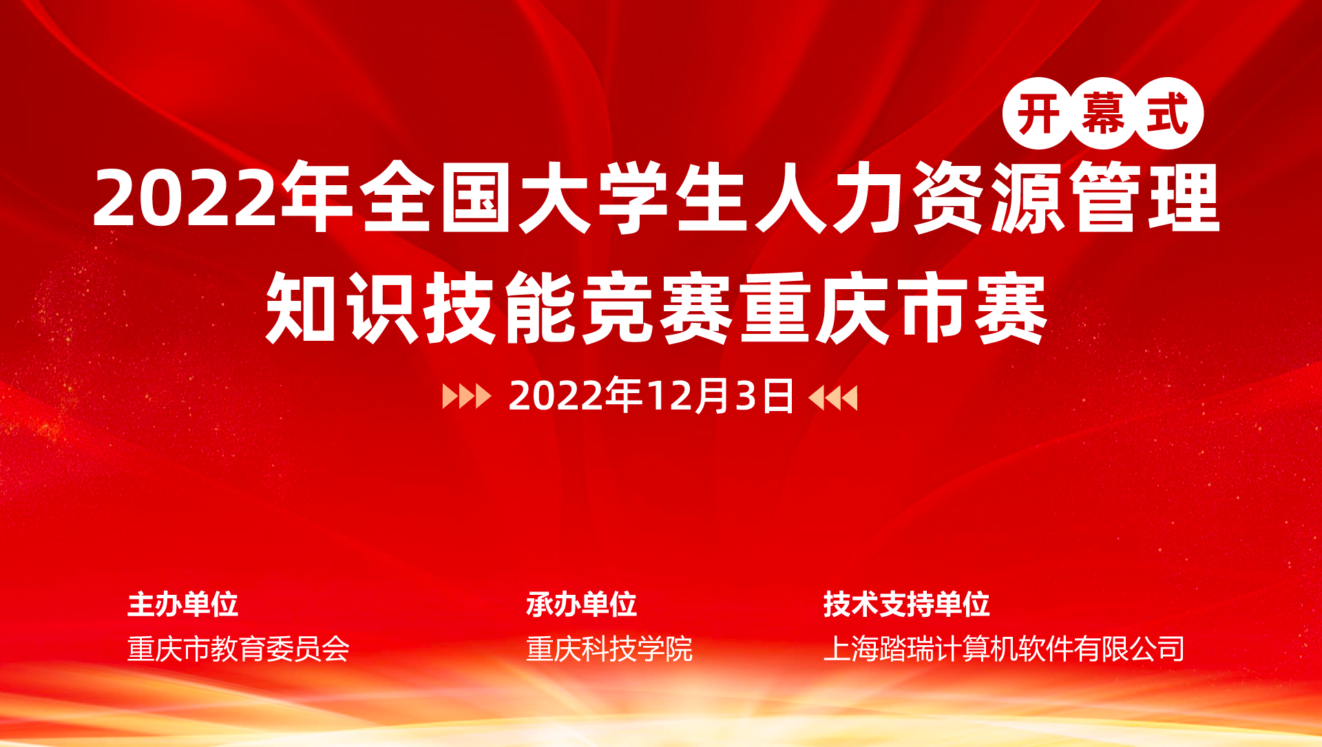 由重庆市教育委员会主办,重庆科技学院承办,上海踏瑞计算机软件有限公司作为技术支持单位的2022年全国大学生人力资源管理知识技能竞赛重庆市...