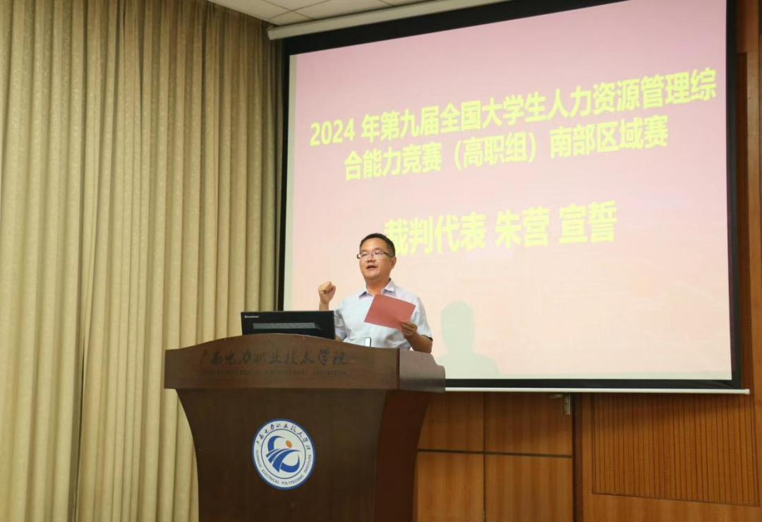 9月22日上午8:50,第九屆全國大學生人力資源管理綜合能力競賽南部區域賽開幕式如期而至,開幕式由廣西電力職業技術學院財經與管理學院院長全細珍主持。一眾賽項指導、裁判長、監督員、賽項執行、主辦單位、承辦單位、技術支持單位、參賽院校指導老師和參賽學生共同見證了賽事的正式啟動。