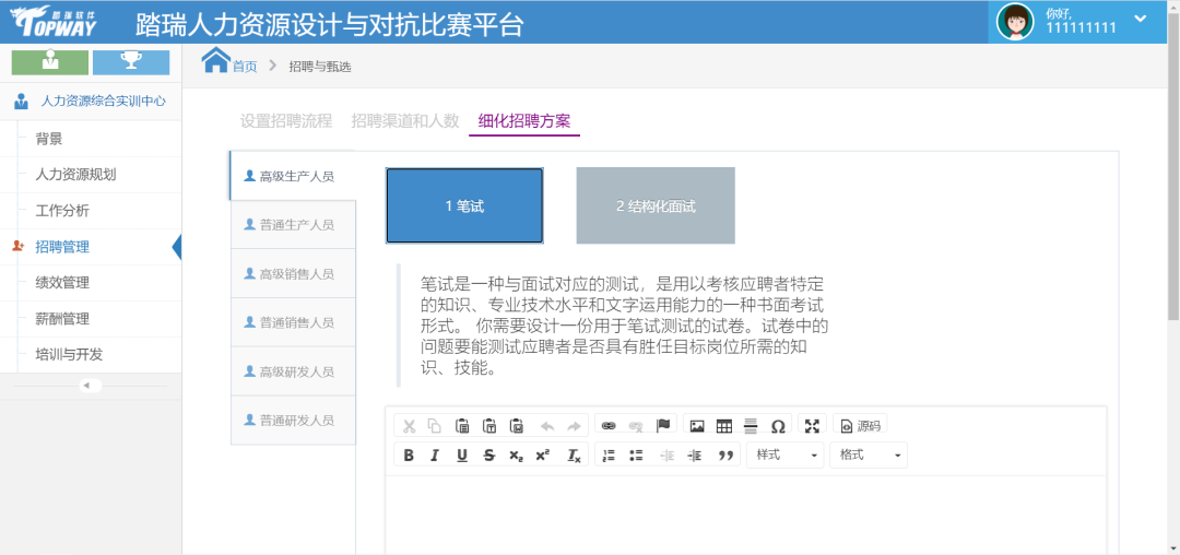 軟件要求學(xué)生能夠系統(tǒng)化思考并完成系統(tǒng)性人力資源決策,應(yīng)用自己的人力資源管理技能解決人力資源體系問題。踏瑞產(chǎn)品最大程度的強(qiáng)化了學(xué)生的這一思考過程,簡化操作部分,讓學(xué)生更專注于思考;全程零操作讓老師能更專注于對(duì)學(xué)生問題的反饋和專業(yè)化解讀。