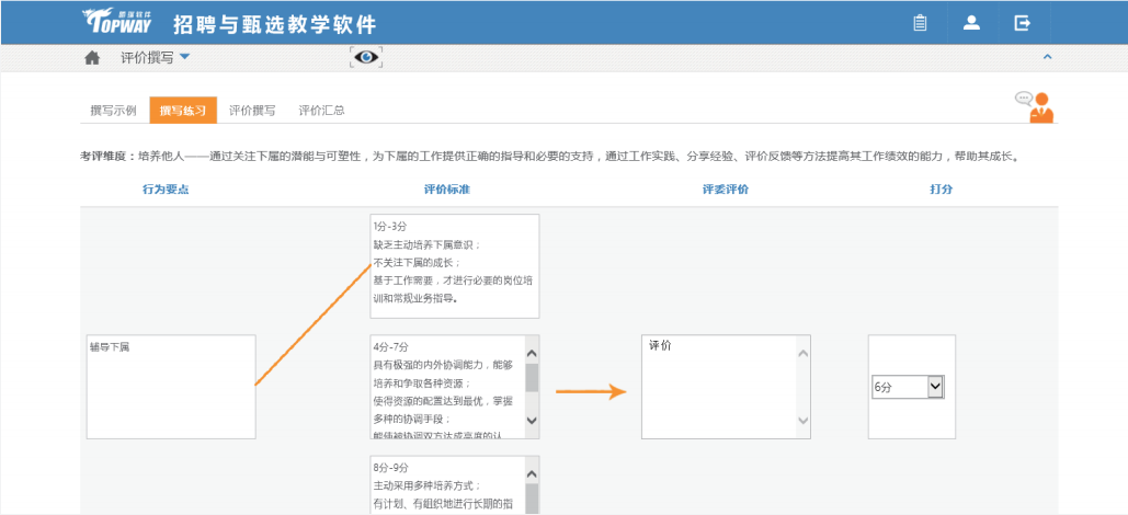 通過樣例練習,建立評分標準體系,輔助學生在招聘與甄選模塊進行客觀、公正的評分。